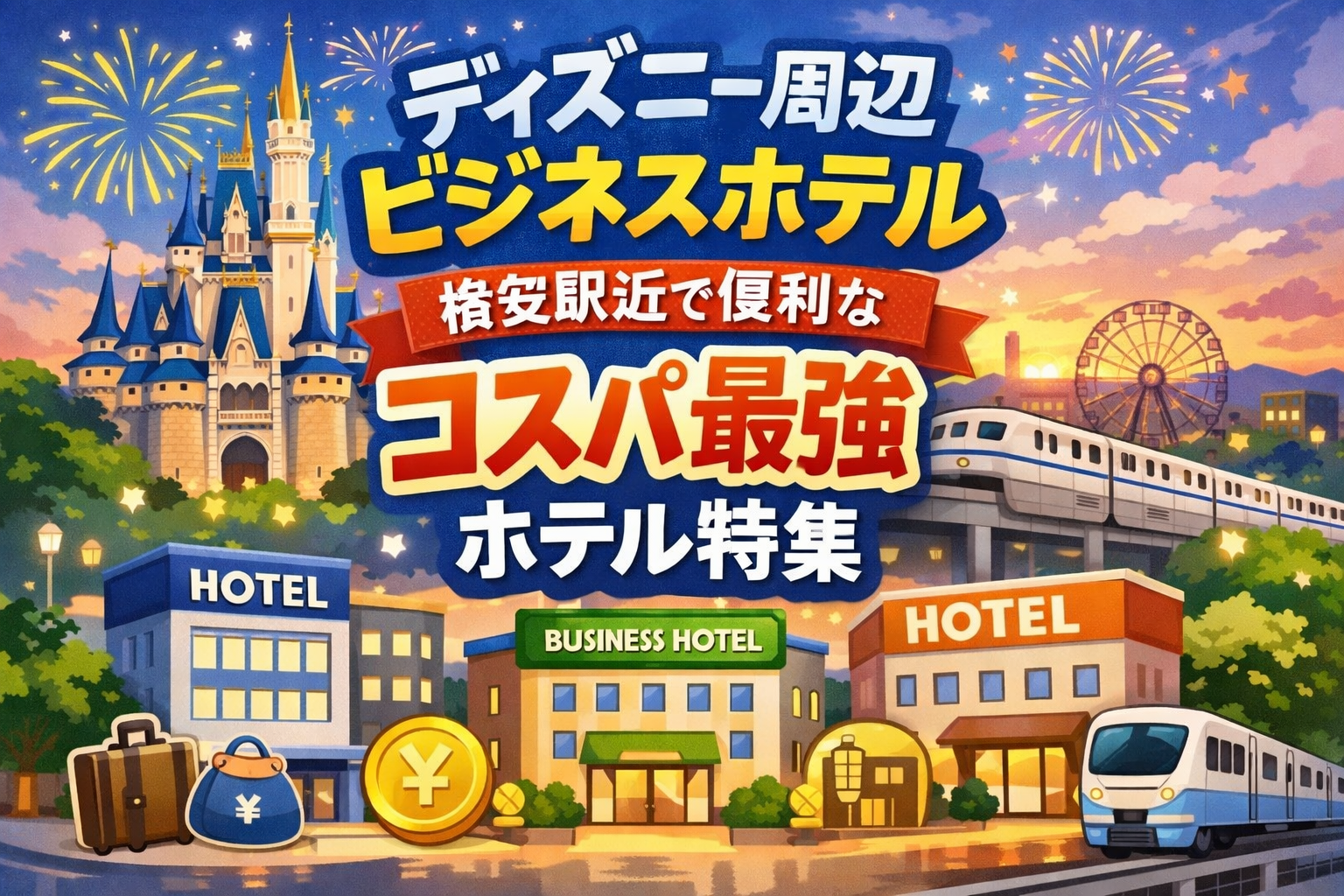 「パークからできるだけ近くて、駅から徒歩圏内、しかも格安で泊まれるホテルが知りたい!」という方に向けて、今回は“駅近×格安×ビジネスホテル”をキーワードに、ディズニー周辺で人気の宿泊先を徹底紹介します。