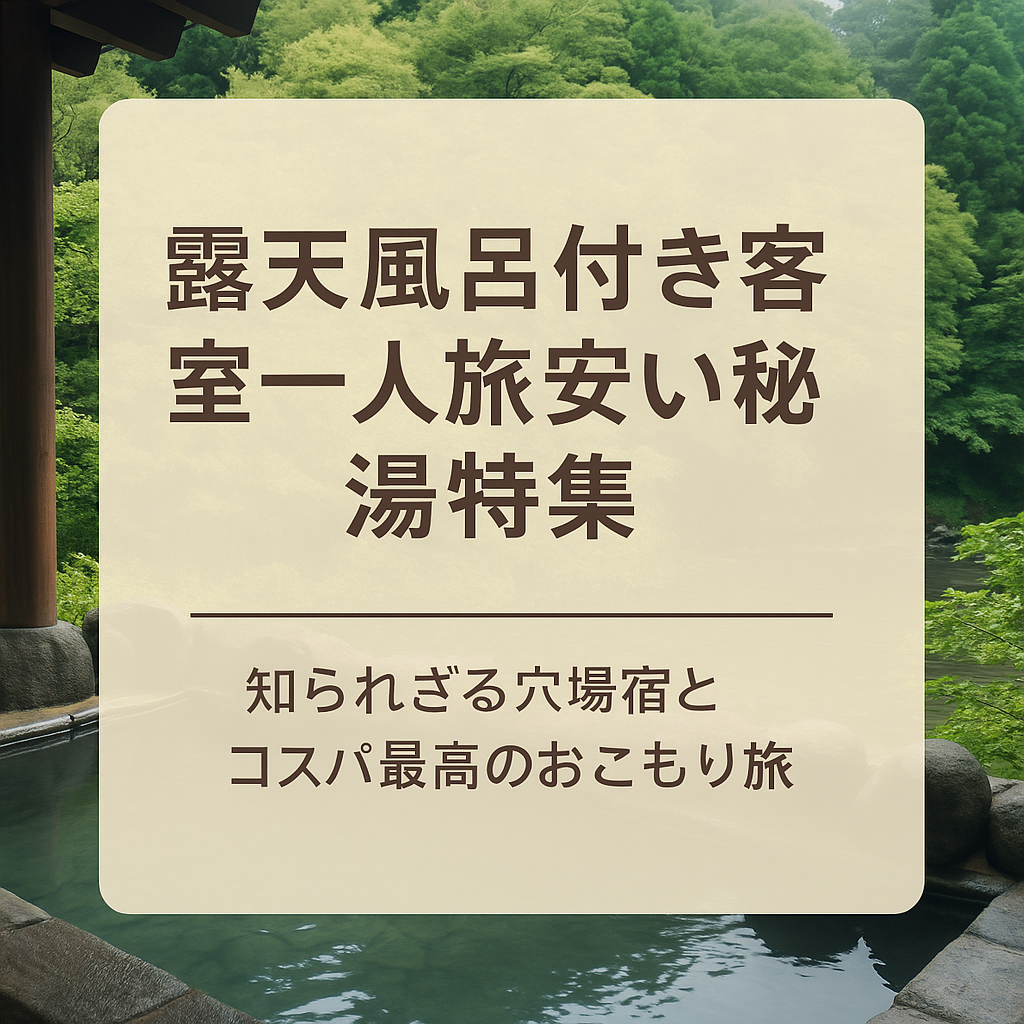 この記事では、「露天風呂付き客室 一人旅 安い 秘湯」の条件をすべて満たす全国のおすすめ宿を厳選してご紹介します。さらに、一人旅を快適に楽しむためのコツや、宿選びのチェックポイント、雨の日でも楽しめる“おこもり旅”の過ごし方などもたっぷり解説。